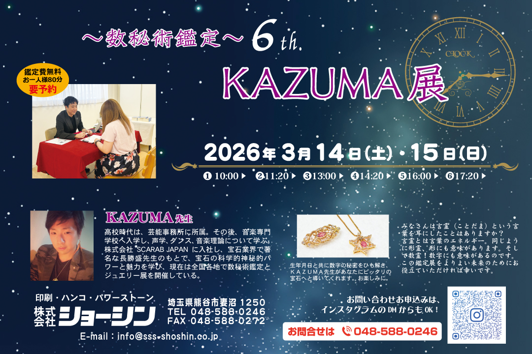 KAZUMA先生による「第6回 KAZUMA展」を開催します。